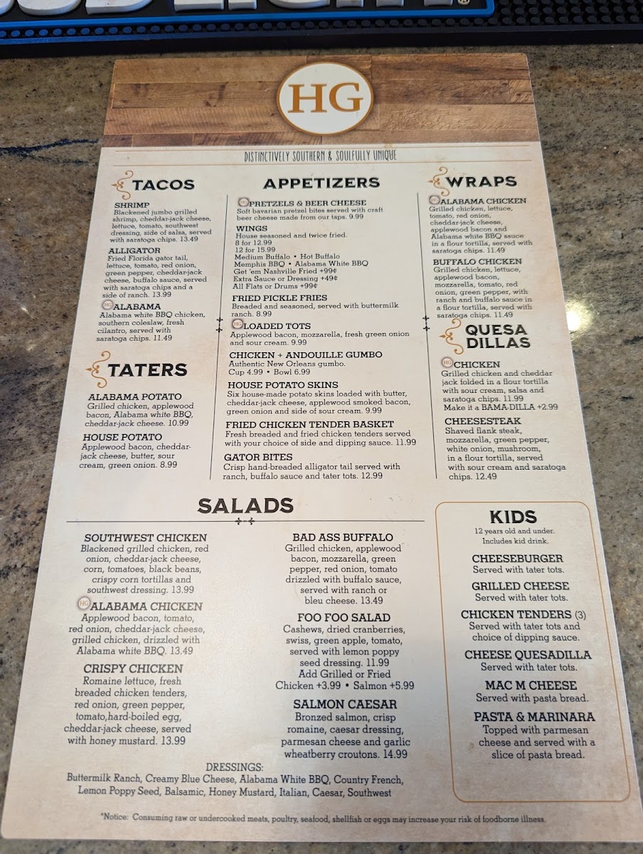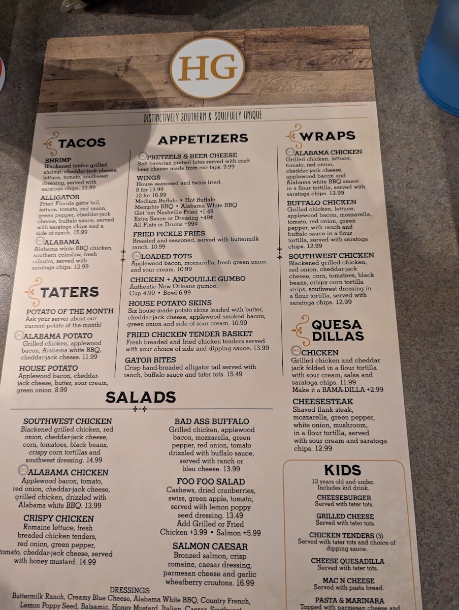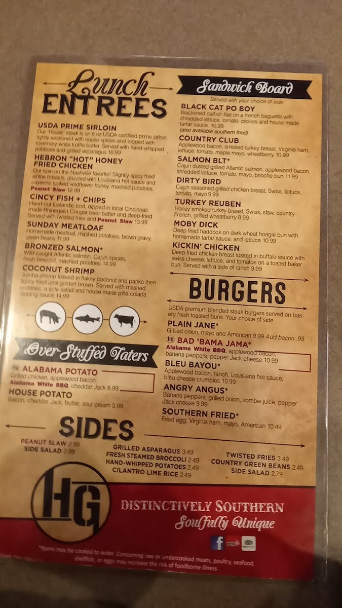 Start your experience with HG Specialty Cocktails like the Espresso Martini or Augustine's Special, perfect for winding down. As you explore the menu, don’t miss the fan-favorite Kickin Chicken and the praised Pork Chop, expertly cooked to perfection. Vegetarian options like Potato Skins have received enthusiastic approval, even from non-enthusiasts.